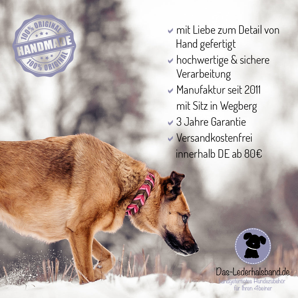 Ich verwende für die Halsbänder hochwertiges Fettleder, welches in einer deutschen Gerberei zugerichtet wurde.